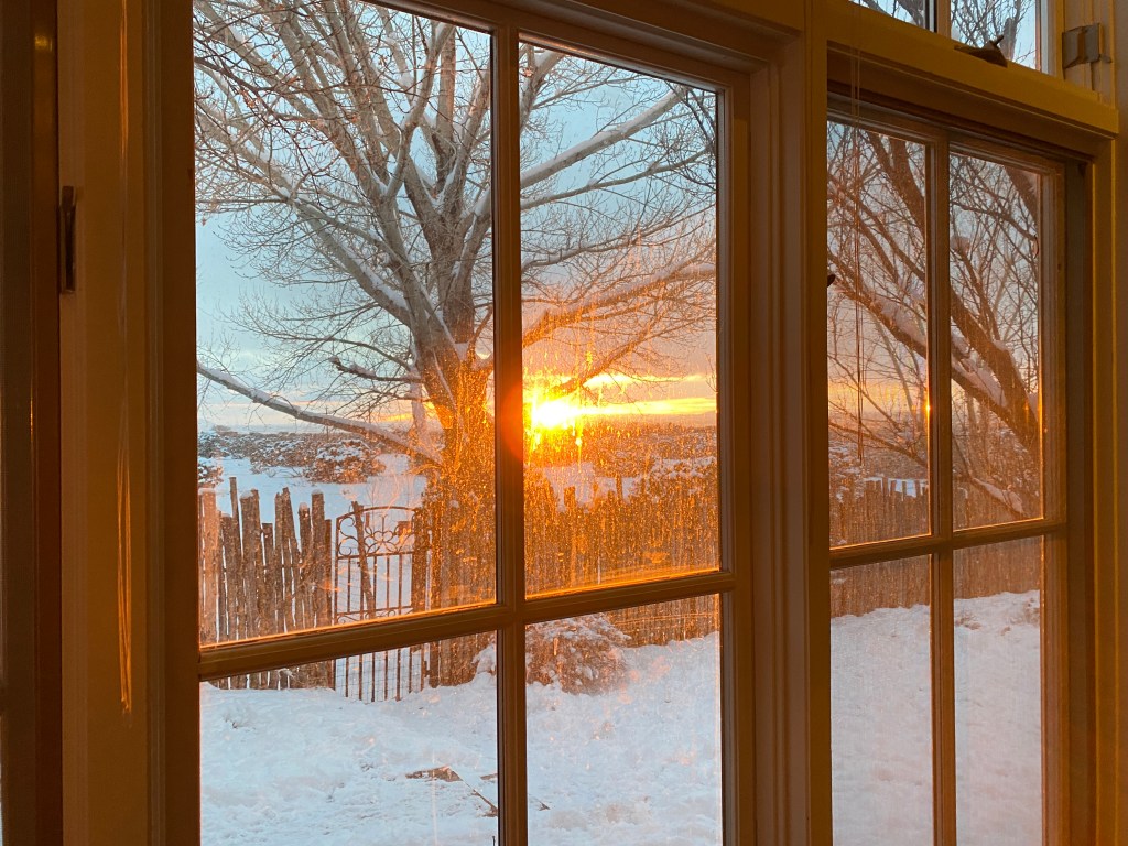 And then deep snow came in the night. Waking to the early dawn the dim was lit with reflection off the white blanket tucked up against the house too deep to let the Duckles out to pee off the bedroom door. It stilled me for a bit. Stunned and frozen my tears like snow waiting for some warmth to set them dripping.